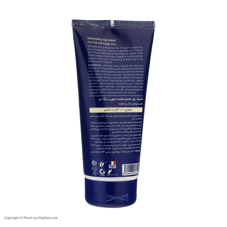 ترکیبی انحصاری شامل روغنهای گیاهی مورینگا، آرگان، هسته انگور و دانه آفتابگردان, حاوی کراتین هیدرولیز شده, حاوی کلاژن,