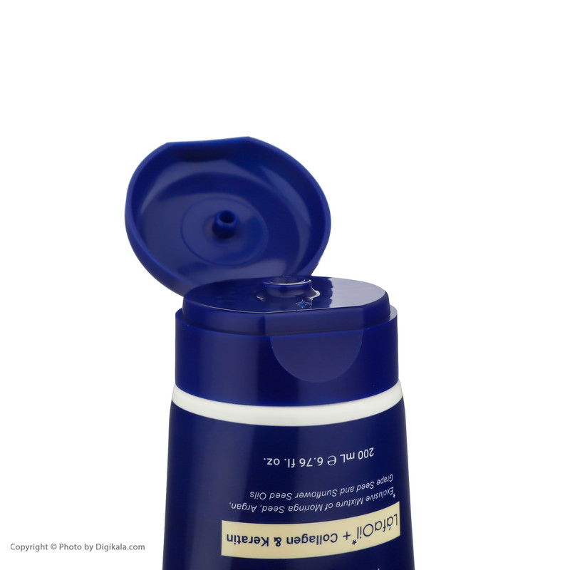 حاوی : روغن‌های گیاهی مورینگا، آرگان، هسته انگور و دانه آفتاب‌گردان, حاوی کراتین هیدرولیز شده, حاوی کلاژن,