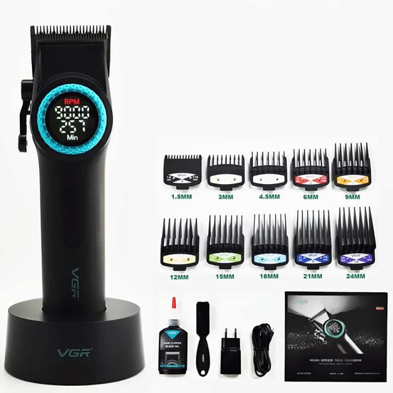 چهار رنگ مشکی .قرمز.سبز وطلایی به صورت رندم منبع انرژی: باتری 4600 میلی آمپر مدت زمان شارژ کامل دستگاه: 300 دقیقه مدت زمان قابل استفاده: 260 دقیقه قابلیت تنظیم قدرت از 7000 الی 9000 دور در دقیقه نوع: حجم زن مناسب: فید و سایه زنی جنس تیغهها: بهره گیری از فناوری DLC دارای اهرم تنظیم درجه اقلام همراه: استند شارژ و.