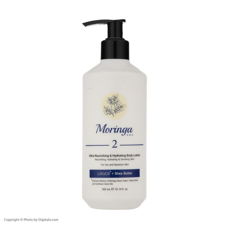 لوسیون بدن فوقمغذی و آبرسان مورینگا امو 2 با قدرت آبرسانی بالا و جذب سریع، به عمق پوست نفوذ کرده و موجب حفظ طراوت و شفافیت آن میشود. این محصول با جلوگیری از خشکی، چینوچروک و علائم پیری، پوست را نرم و لطیف نگه میدارد. همچنین با ایجاد لایهای محافظ، از پوست در برابر نور خورشید و آلودگیهای محیطی حفاظت کرده و به تسکین خارش و التهابات پوستی کمک میکند.