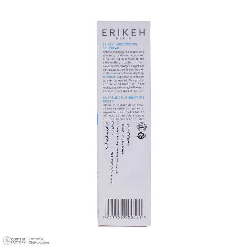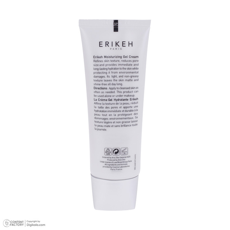 ژل کرم مرطوب کننده صورت اریکه، آبرسان و مرطوب کننده پوست صورت است و مناسب استفاده پوست مختلط تا چرب میباشد. این محصول با ساختار سبک خود به خوبی روی پوست پخش میشود و از ایجاد براقیت روی پوست جلوگیری میکند. استفاده از ژل کرم مرطوب کننده اریکه باعث تنظیم ترشح چربی پوست میشود و منافذ باز را جمع میکند. از این کرم جهت استفاده زیر آرایش نیز مناسب است.
