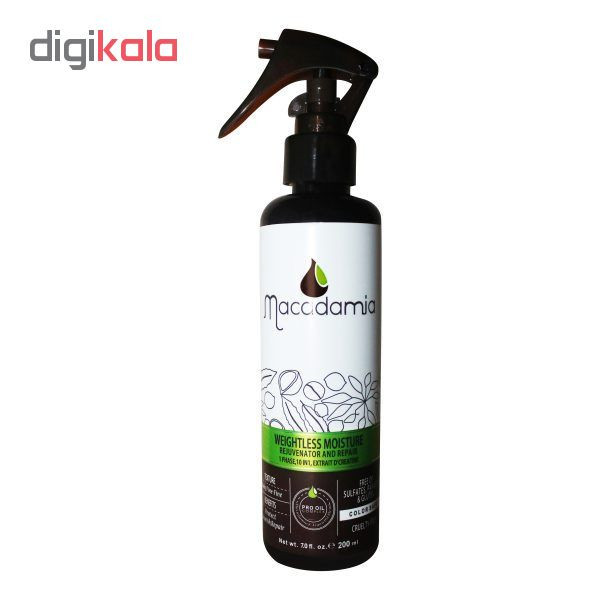 اسپری 10 کاره نرم کننده موهای رنگ شده ماکادامیا محصولی است که بعد از حمام میتوانید از آن استفاده نمایید چون نیازی به آبکشی ندارد. این اسپری مخصوص موهای رنگ و هایلایت شده فرموله شده است. مواد شیمیایی موجود در رنگ موها، به مو آسیب وارد کرده و تار مو را خشک، نازک و بدحالت میکند. پس از اینکه برای رنگ کردن موهای خود اقدام مینمایید، محصولات ویژه مراقبت از موهای رنگ شده را نیز باید تهیه کنید. اسپری مو ماکادامیا گزینهای مناسب برای انتخاب است. این محصول حاوی کراتین هیدرولیز شده، روغن آرگان و روغن ماکادامیا بوده و موهای رنگ شده شما را ترمیم میکند. اسپری نرم کننده ماکادامیا مخصوص موهای رنگ و دکلاره شده در مدت زمانی کوتاه استقامت موهای شما را افزایش میدهد. این محصول مانع شکنندگی موها شده و از گره خوردن آنها جلوگیری میکند.موها تقریبا به طور کامل از کراتین ساخته شدهاند. کراتین رشتههای پروتئینی سختی است که مو، لایههای ناخن و لایه بالایی پوست را پوشانده است. رنگ و دکلاره کردن (به دلیل داشتن مواد شیمیایی)، استفاده از اتوی مو و همچنین فر کردن مو از عواملی هستند که به ساختار پروتئین مو آسیب میزنند. نور خورشید و آبهای کلردار نیز به ساختار پروتئین مو آسیب میرسانند. به منظور رهایی از این مشکلات میتوان از محصولاتی استفاده کرد که حاوی کراتین هیدرولیز شده هستند. امروزه در بسیاری از شامپوها، نرمکنندهها و ماسک موها از این ماده بهره میگیرند. کراتین هیدرولیز شده موها را تقویت کرده و کوتیکول آسیبدیده مو و ساختار کراتینی آن را ترمیم میکند.اسپری نرم کننده 10 کاره ماکادامیا مخصوص موهای رنگ و دکلره شده از جمله محصولات مرغوبی است که حاوی کراتین هیدرولیز شده بوده و به ترمیم موهای آسیبدیده شما کمک میکند.